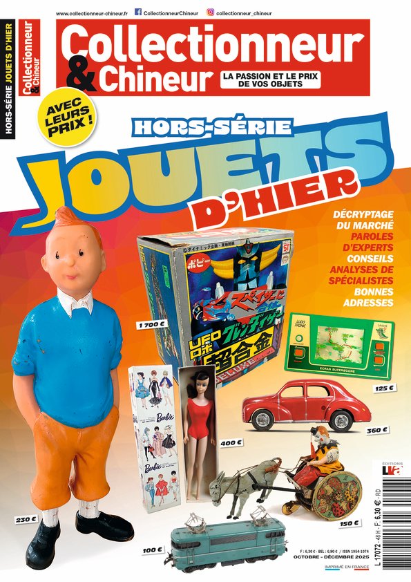 Les jouets d’hier ne sont pas seulement des fragments du passé, ce sont de véritables témoins de notre histoire et de notre culture. En les (re) découvrant, nous renouons nos souvenirs façonnés par des générations désireuses de transmettre un patrimoine. Ce hors-série est une invitation à explorer les différentes facettes de cette catégorie de collection qui continue d’éveiller l’enfant qui sommeille en nous. Dans ce numéro spécial, vous trouverez les témoignages d’experts, de collectionneurs passionnés, et de fabricants, la présentation d’une sélection de modèles de véhicules miniatures, poupées, trains, jouets animés, ou encore figurines. Sans oublier les bonnes adresses regroupant les boutiques spécialisées, études, musées et les prochaines manifestations.