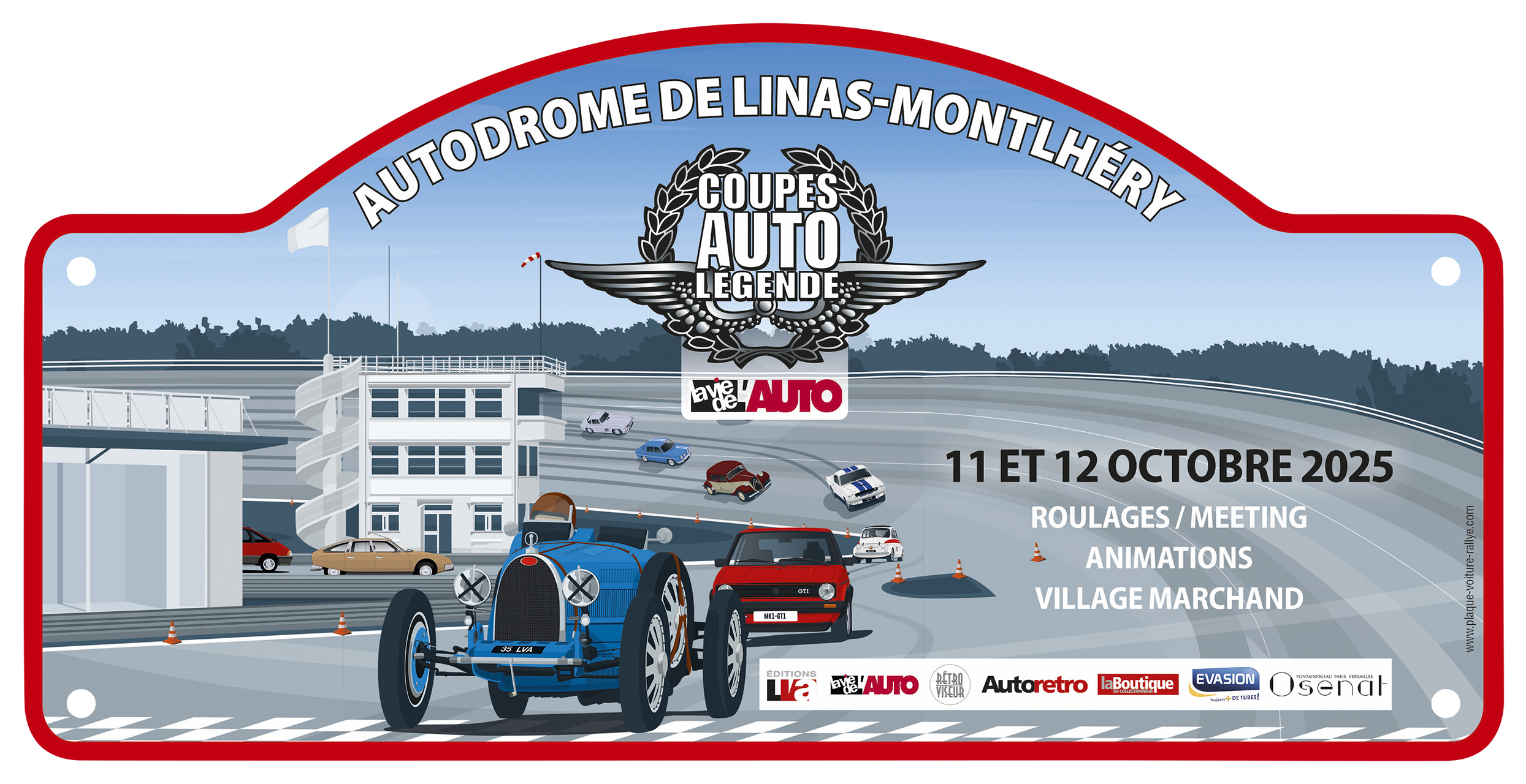 La plaque collector de la 2ème édition des Coupes Auto Légende 2025 en édition limitée 😉 En PVC avec perforations horizontales aux deux extrémités.